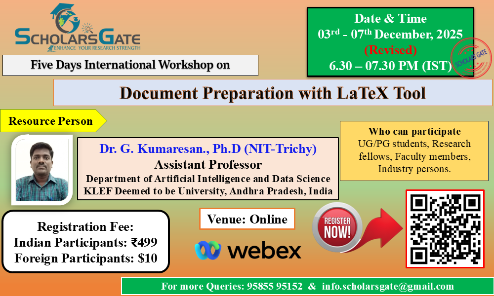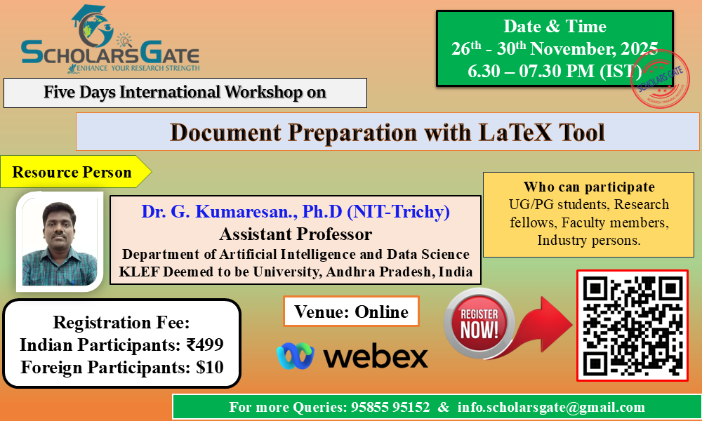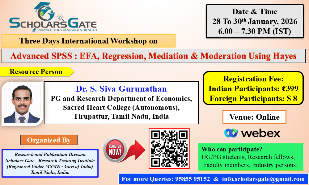 The interactive nature of the workshop conducted by Scholars Gate encouraged participation and collaboration. The workshop content is up-to-date with the latest research methodologies. Thank you, SG Team.