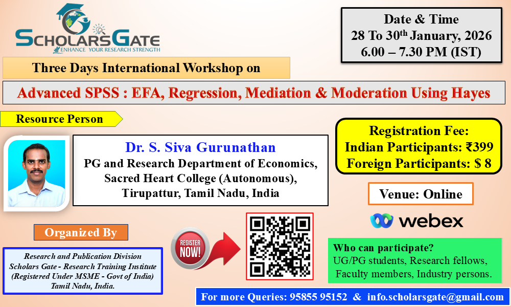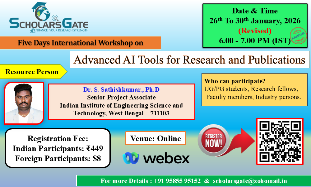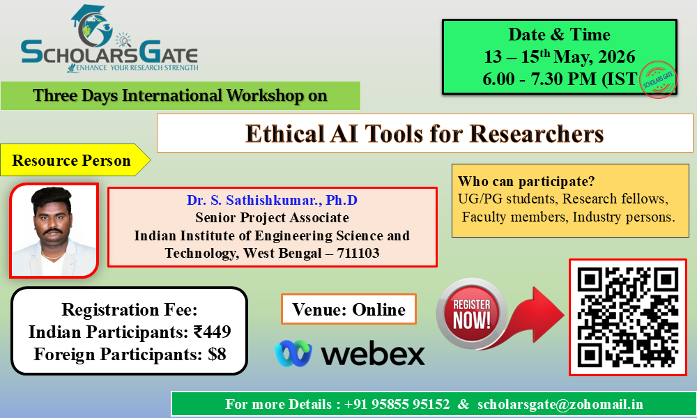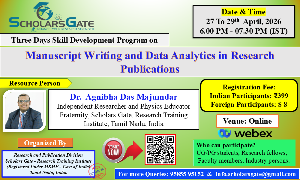 The interactive nature of the workshop conducted by Scholars Gate encouraged participation and collaboration. The workshop content is up-to-date with the latest research methodologies. Thank you, SG Team.